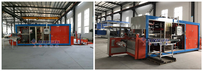 2. ACF系列大高速吸塑機(jī)。是市場上使用吸塑機(jī)型號,在自動化程度、產(chǎn)量、人工使用量、機(jī)器價(jià)格親民,較為容易接受的吸塑機(jī)設(shè)備。工藝步驟:卷材自動拉料、加熱、真空吸塑、整版裁切、裁斷機(jī)分切。