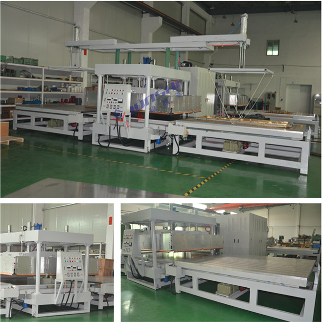 這款機器擁有駿精賽結(jié)構(gòu)和規(guī)模陣容:四柱龍門焊接機頭2個,電動滑臺裝置4個,6套繼電器,8臺氣缸和30個高壓陶瓷電容。整機采用150kw大功率,占地面積超過100平米。
