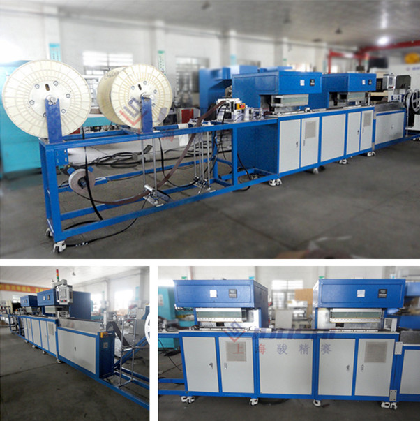 上海駿精賽全自動砂帶焊接機(jī),采用雙工位自動上料、收料結(jié)構(gòu)。雙機(jī)頭分段焊接,產(chǎn)品精美,單次焊接長度可調(diào),生產(chǎn)效率高。適用于卷材熱合,如PVC包裝袋、書皮書套、血液袋、引流袋、營養(yǎng)袋、輸液袋、相冊內(nèi)頁、卡包卡套、胸牌、名片冊、鞋套、PVC折盒壓痕、雞糞傳送帶焊邊、磁性門簾等。
