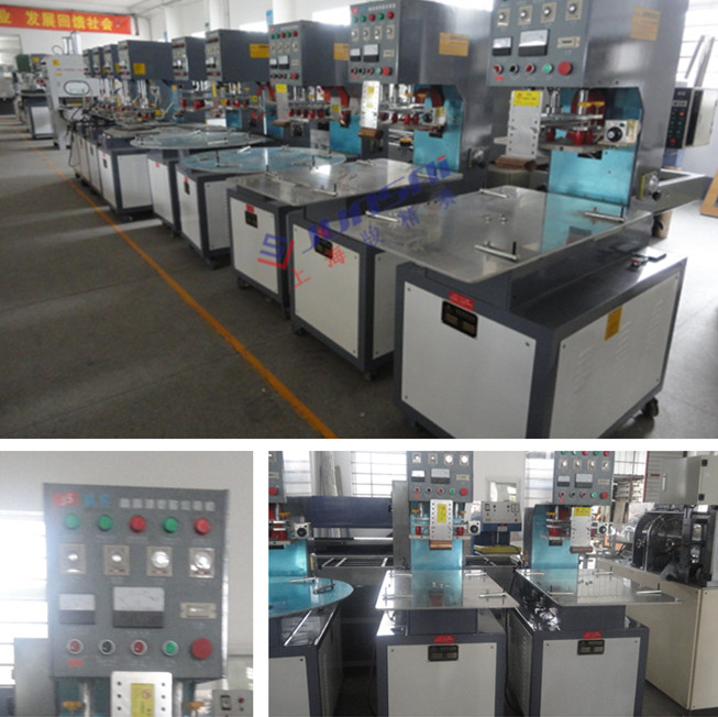 2. 高周波模具一般為一個(gè)上模、二個(gè)下模,交替工作,用戶也可以根據(jù)產(chǎn)量來選擇效率更高的多工位自動(dòng)轉(zhuǎn)盤式高周波機(jī)械。