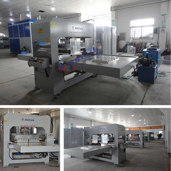 4. 高周波壓花機(jī)采用機(jī)頭,壓力輕重可任意調(diào)節(jié),設(shè)計(jì)利用肘節(jié)推動(dòng)杠桿原理,能使壓力均勻,上落平穩(wěn),以配合不同熔接深淺度的需要,特別適合用于難對(duì)位產(chǎn)品。