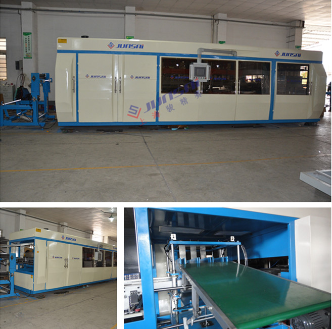 駿賽產(chǎn)品部新推出正負(fù)壓成型沖切一體吸塑機(jī),該設(shè)備為吸塑加工行業(yè)節(jié)約人力成本、提供品質(zhì)及提高產(chǎn)能奠定了先決條件。吸塑裁切一體機(jī)操作方便、結(jié)構(gòu)穩(wěn)固、占地面積小、通用性強(qiáng),從自動(dòng)上料卷到自動(dòng)執(zhí)行正負(fù)壓吸塑到自動(dòng)沖切到人工收取成品,一個(gè)人可完成,正負(fù)壓吸塑機(jī)的運(yùn)作方式在常規(guī)吸塑機(jī)基礎(chǔ)上在快很多,效率提升較多,使加工制品單件成本下降較多,保障了用戶的競(jìng)爭(zhēng)力,設(shè)備可根據(jù)客戶需求定制。